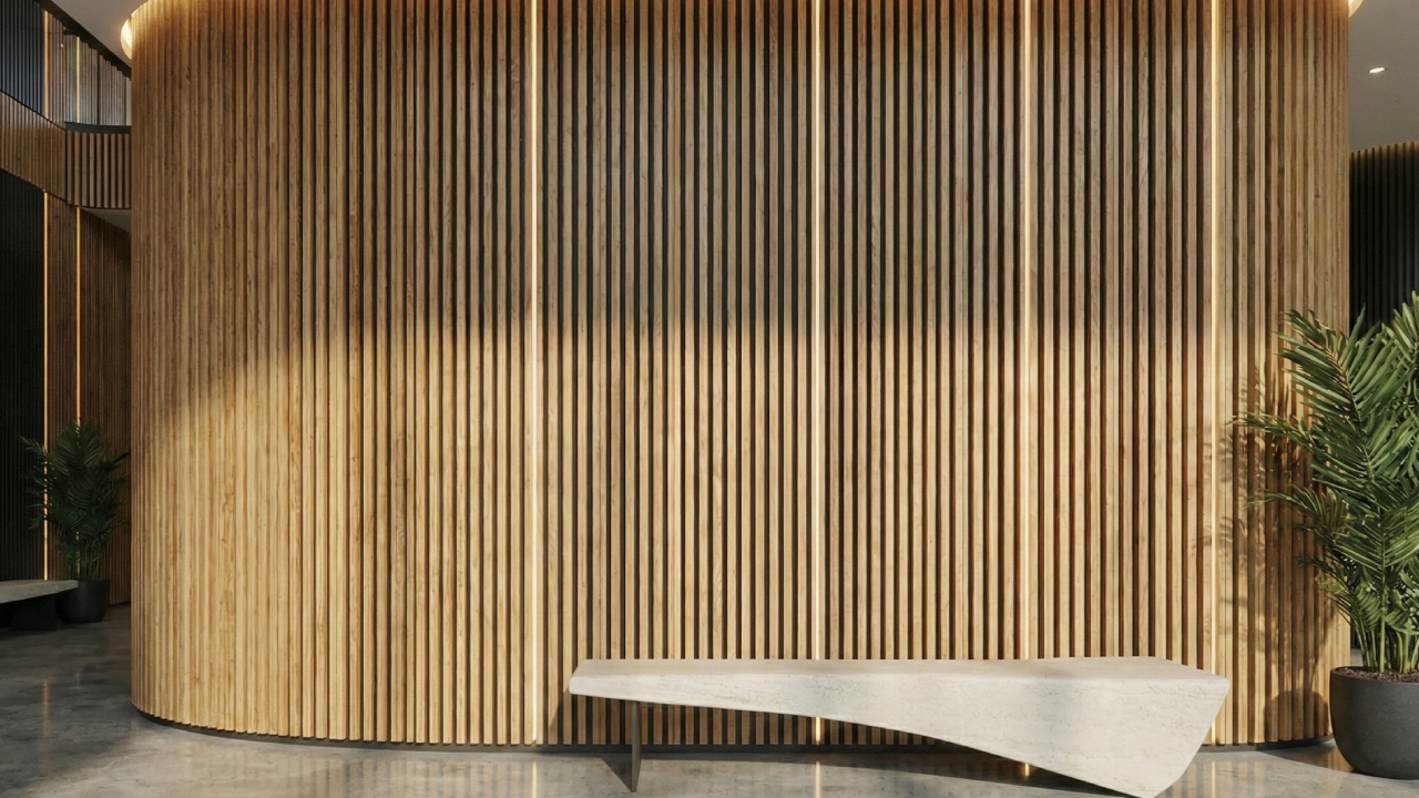 Las superficies ranuradas continúan ganando protagonismo en proyectos arquitectónicos y de interiorismo. El uso de paneles ranurados WPC permite crear muros, fachadas y cerramientos con mayor riqueza visual, aportando: